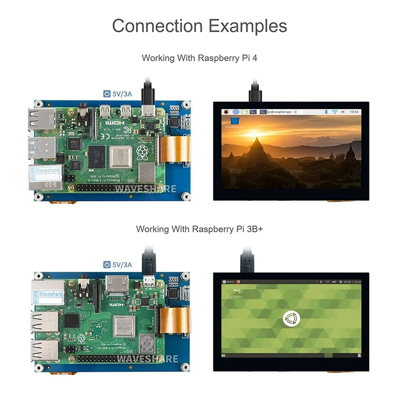 Cet écran est compatible avec les modèles Raspberry Pi 4B/3B+/3A+/3B/2B/B+/A+, ainsi qu’avec les modules CM3/3+/4 nécessitant une carte adaptatrice supplémentaire. Il peut être utilisé avec les systèmes d’exploitation Raspbian, Ubuntu, Kali, WIN10 IoT et RetroPie.
