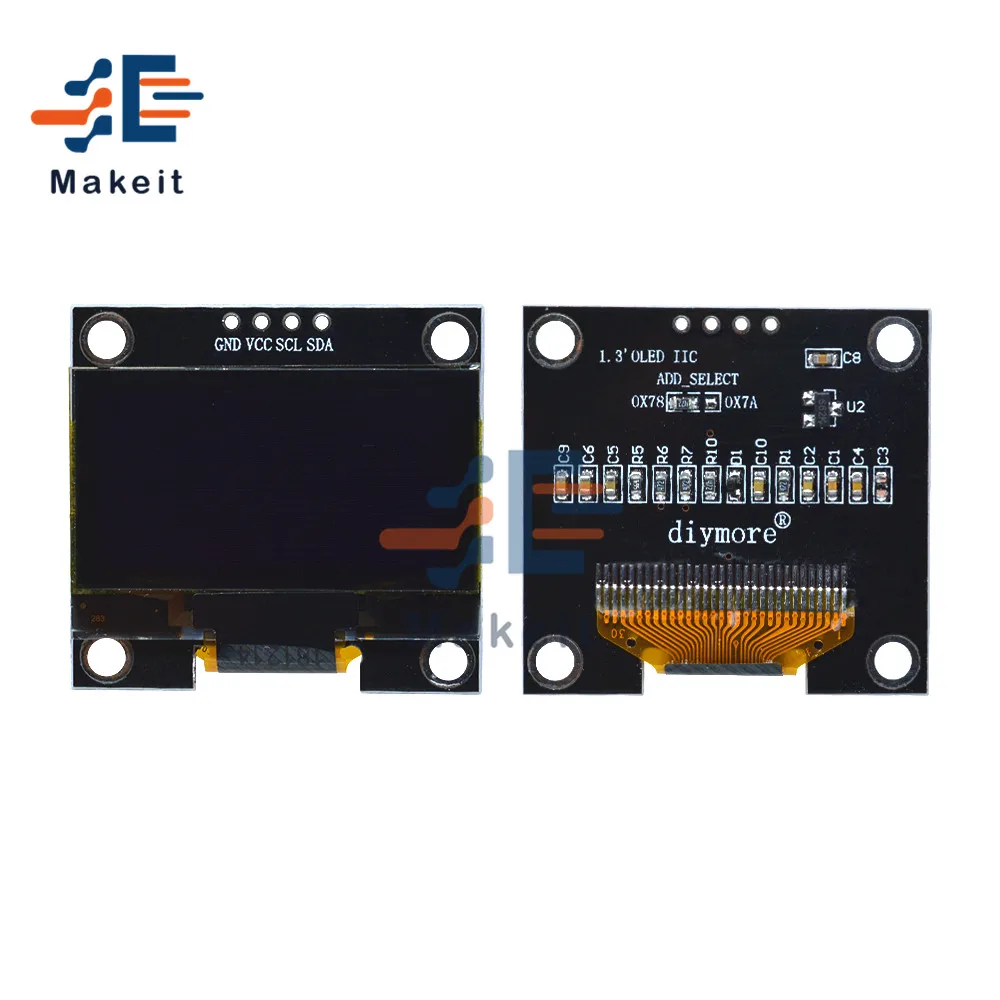 L’écran OLED 1.3 “LCD blanc/bleu est un module d’écran LCD de taille 1.3 pouces avec une résolution de 128×64. Il utilise la puce de contrôle SSH1106 et fonctionne avec une tension d’entraînement de 3.3V-5V. L’interface utilisée est IIC.