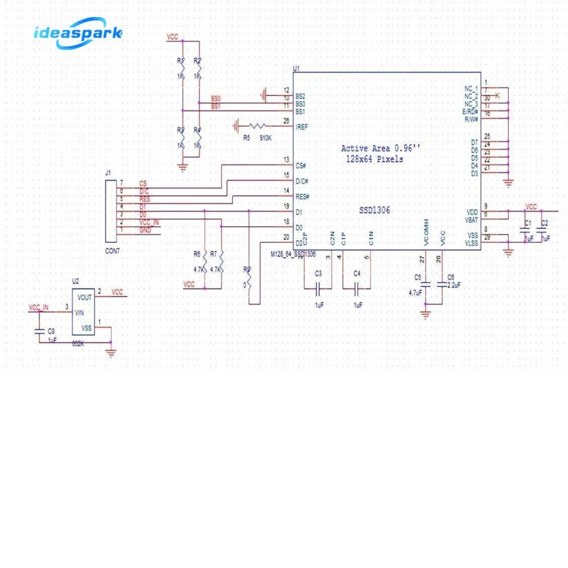 - Écran OLED de 0.96 pouces avec une résolution de 128×64 pixels
