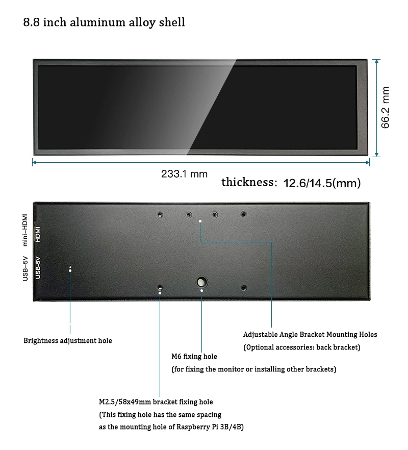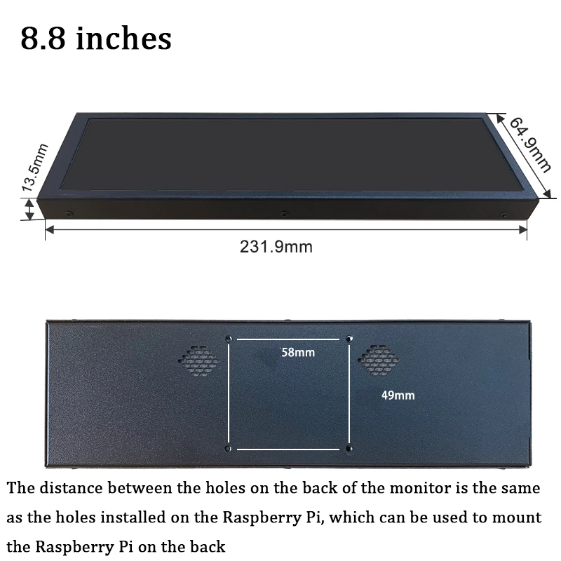 L’écran de la bande d’affichage portable Raspberry Pi mesure 8.8 pouces.