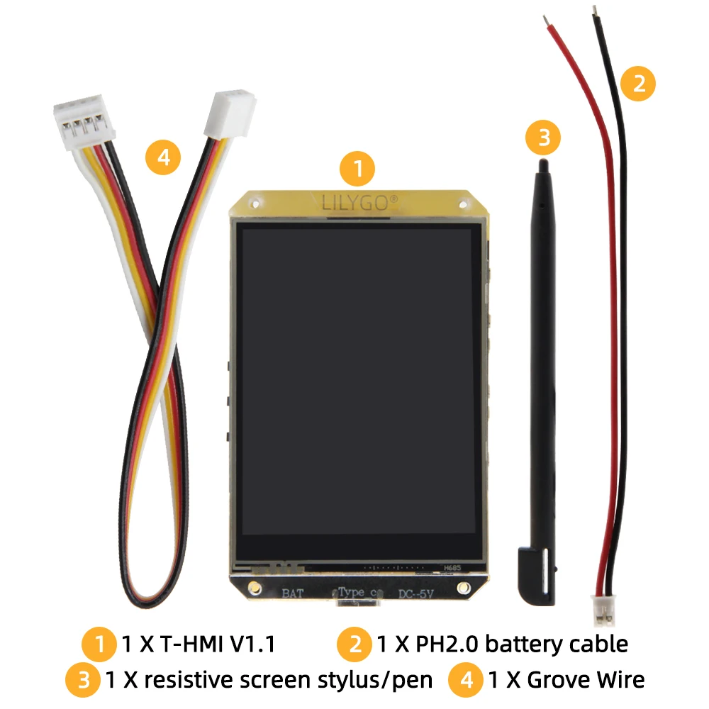 T-HMI est actuellement le plus grand écran tactile de LILYGO équipé d’une puce ESP32-S3. L’écran utilise un écran LCD ST7789 de 2.8 pouces et est équipé d’un stylet/stylo à écran résistif. Il prend en charge la carte TF, le WIFI et le Bluetooth 5.0. Avec une mémoire flash embarquée de 16 Mo et une PSRAM de 8 Mo, il dispose également d’une interface USB de type C et d’une alimentation 5V DC.
