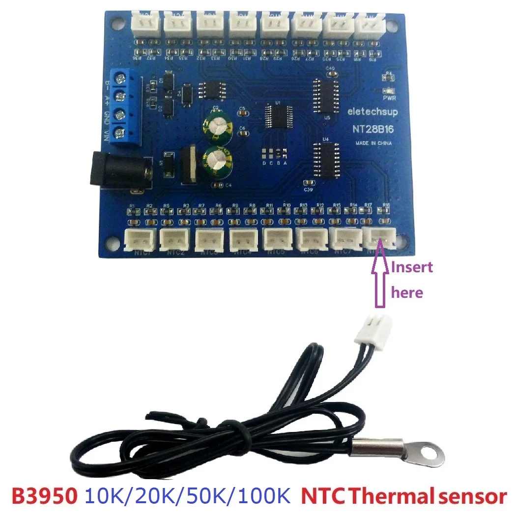 Le collecteur de température est compatible avec les capteurs NTC 10K/20K/50K/100K B3950.