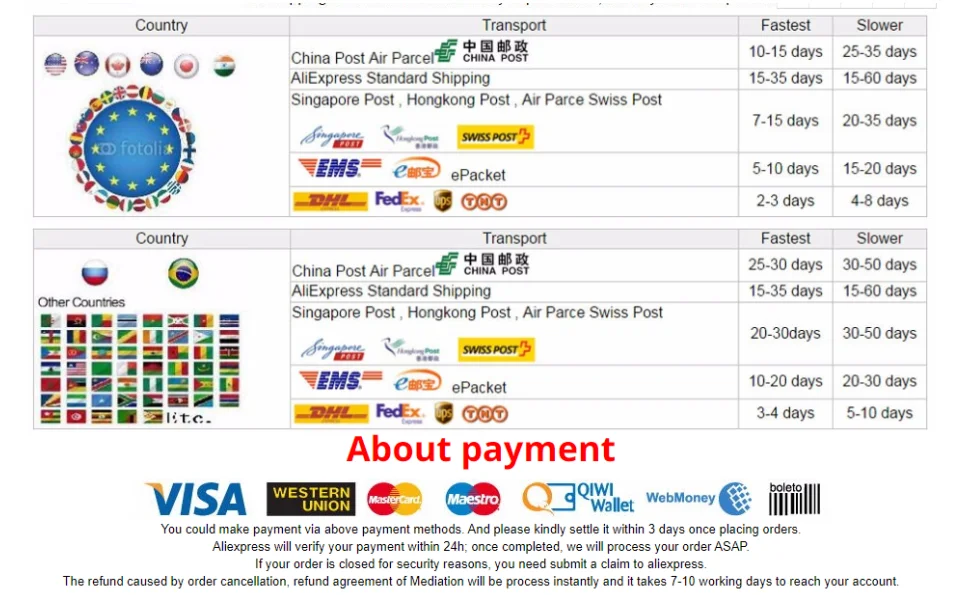À propos de nous nous engageons à: 1: fabriquer uniquement les meilleurs biens de consommation et assurer la plus haute qualité possible. 2: livrer des marchandises à nos clients partout dans le monde avec rapidité et précision politique de Service à la clientèle politique de Service à la clientèle nous sommes plus qu’heureux de répondre à toutes les questions que vous avez, veuillez contacter avec 1: les commandes traitées en temps opportun après la vérification du paiement. 2: nous expédions uniquement aux adresses de commande confirmées. Votre adresse de commande doit correspondre à votre adresse de livraison. 3: si vous n’avez pas reçu votre envoi dans les 30 jours suivant le paiement, veuillez nous contacter. Nous suivrons l’expédition et reviendrons vers vous dès que possible avec une réponse. Notre objectif est la satisfaction du client! 4: en raison de l’état des stocks et des différences de temps, nous choisirons d’expédier votre article de notre premier entrepôt disponible pour une livraison rapide. Nos avantages 1: nous sommes tous propres stocks, avec un approvisionnement adéquat 2: la qualité du produit a atteint une série de certification 3: nous soutenons une variété de transport, hong Kong et les paquets postaux chinois, EMS.DHL fédéral. UPS et TNT, peuvent répondre pleinement aux différents besoins de l’acheteur. Je crois fermement que nous serons votre meilleur partenaire commentaires votre satisfaction et les commentaires positifs sont très importants pour nous, veuillez laisser positif et 5 étoiles si vous êtes satisfait de nos articles et services. Si vous avez un problème avec nos articles ou services, n’hésitez pas à nous contacter avant de laisser la rétroaction nagetive. Nous ferons de notre mieux pour résoudre tout problème et vous fournir les meilleurs services à la clientèle