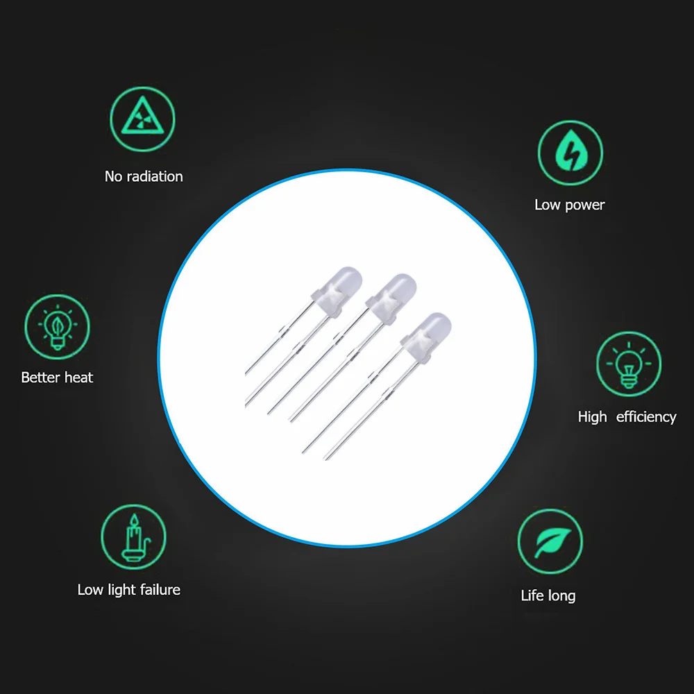 - Paquet: 100PCS Diodes LED diffusées de 3mm