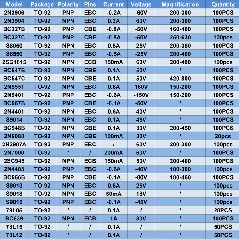 Le kit de transistors TO-92 est idéal pour les amateurs d’électronique et les professionnels qui ont besoin d’une variété de transistors à portée de main. Avec 20 valeurs différentes et un total de 400 pièces, ce kit offre une grande flexibilité pour vos projets.