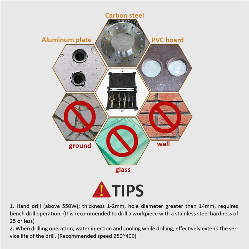 L’acier rapide au cobalt avec revêtement en titane confère à ces forets une durabilité exceptionnelle. Ils resteront tranchants pendant de nombreuses années, ce qui en fait un investissement rentable. Les embouts sont idéaux pour couper des trous dans une variété de matériaux tels que des panneaux en plastique, des feuilles d’aluminium, des panneaux de bois et des tôles d’acier.