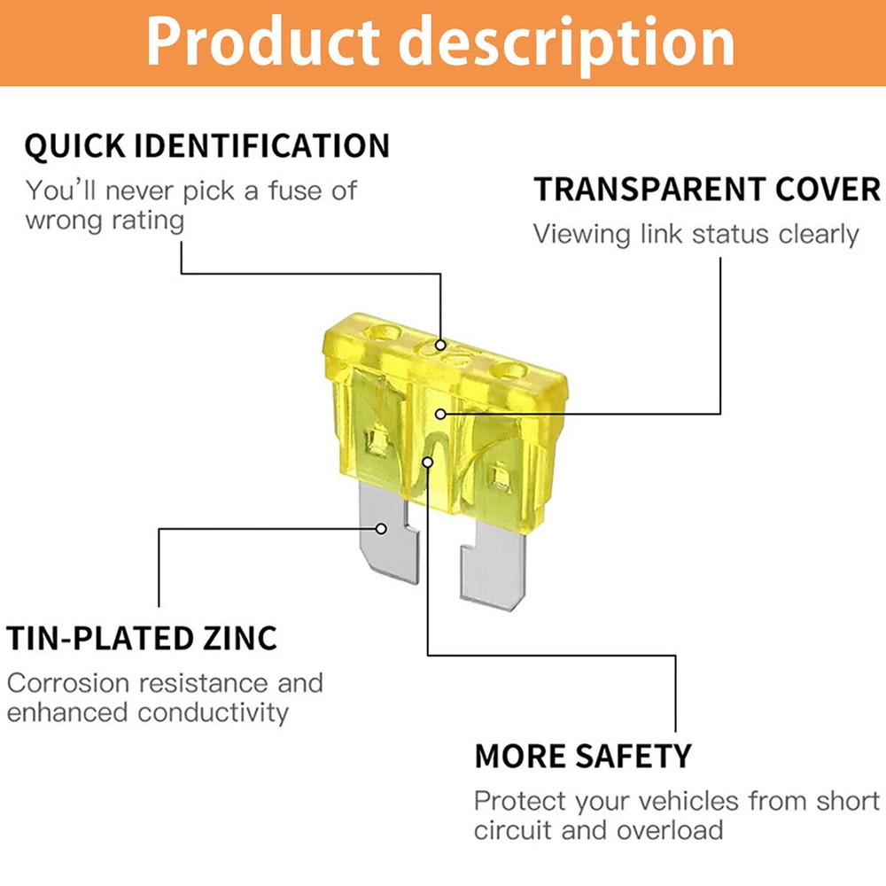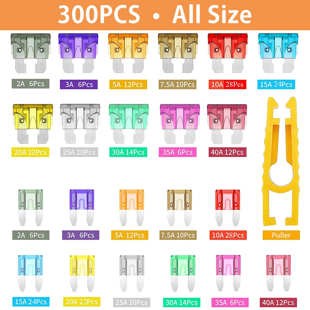 • Mini fusibles : 2A x 6 pièces, 3A x 6 pièces, 5A x 12 pièces, 7.5A x 10 pièces, 10A x 28 pièces, 15A x 24 pièces, 20A x 22 pièces, 25A x 10 pièces, 30A x 15 pièces, 35A x 5 pièces, 40A x 12 pièces