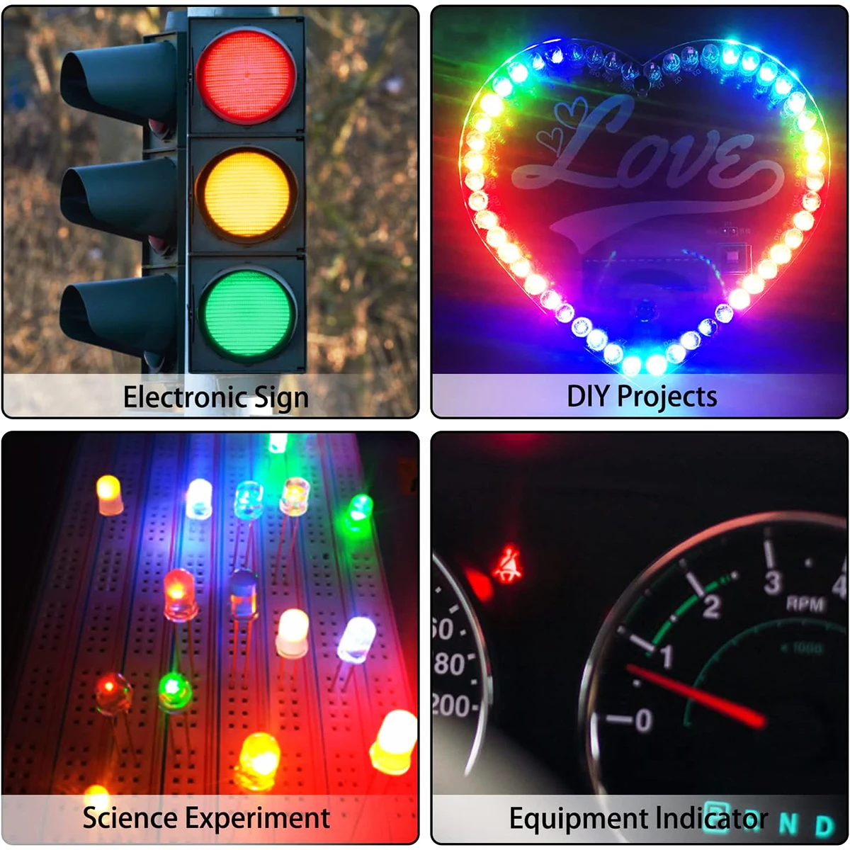 Ces diodes lumineuses LED peuvent être utilisées dans de nombreuses applications, telles que le remplacement des guirlandes lumineuses de Noël, les projets de bricolage de composants électroniques, les projets scientifiques, les expériences électroniques et les applications commerciales.