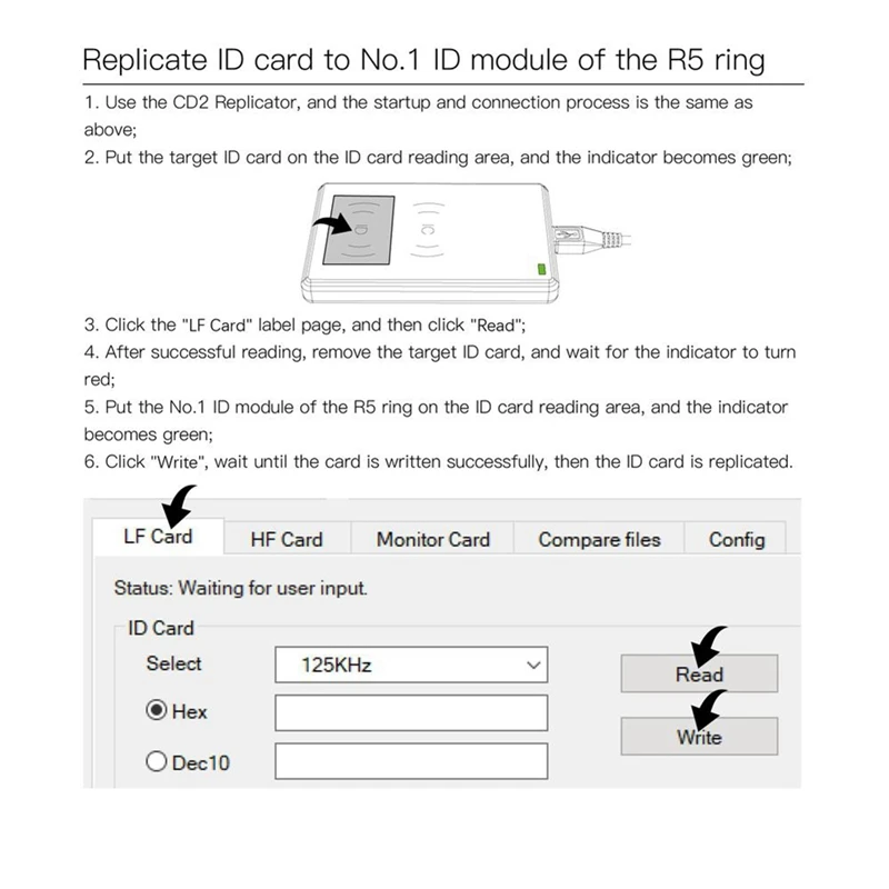 D’après la description du produit, l’Eplicateur 5 pièces offre une fréquence porteuse de 13.56MHZ et 125KHZ, permettant une communication RFID jusqu’à une distance de 1 à 3cm. Il est compatible avec les systèmes d’exploitation Windows 7/8/10/11 et Windows Server version dans la même période. Il dispose d’une interface Type-C pour le CD2 et d’une interface Micro-USB pour l’ID2. Le réplicateur est livré avec deux câbles USB et un manuel en anglais.
