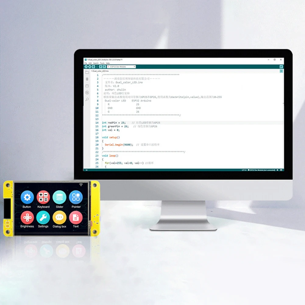 Le microcontrôleur de carte de développement ESP32 est un produit de haute qualité fabriqué en Chine continentale. Avec son écran tactile LCD TFT de 2.8 pouces et une résolution de 320×240 pixels, cet écran intelligent RVB est compatible Bluetooth et dispose d’une connectivité WiFi. Son design compact et léger le rend facile à transporter et à utiliser.