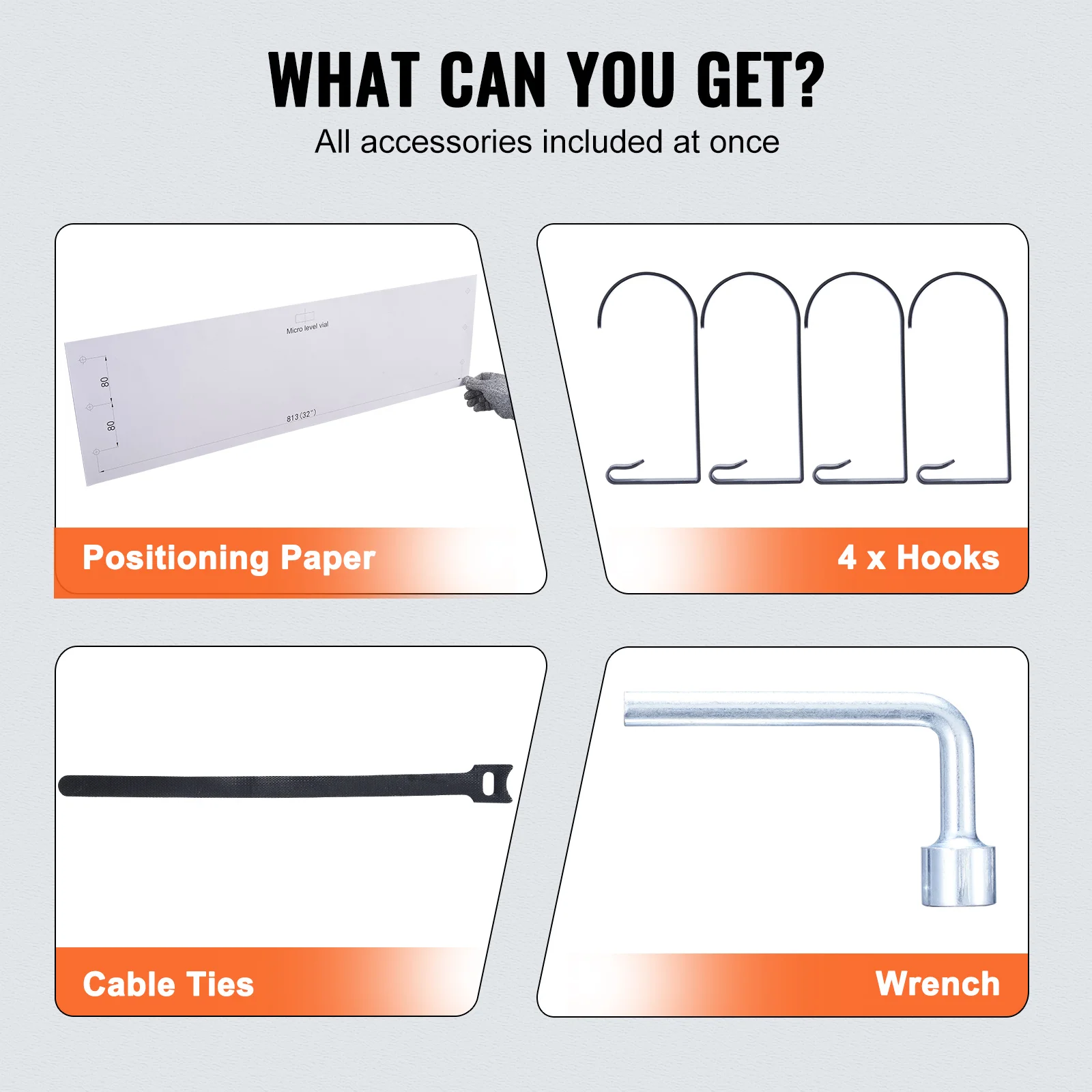 Tout ce dont vous avez besoinPapier de positionnement, crochets, attaches de câble, etc.