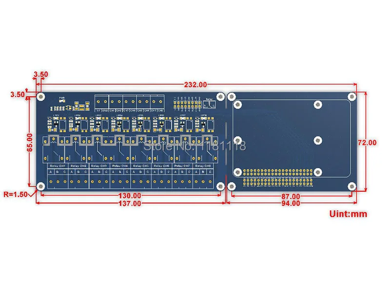 charge les modèles Raspberry Pi A +/B +/2B/3B/3B + et dispose de 8 canaux de relais. Les relais sont de haute
