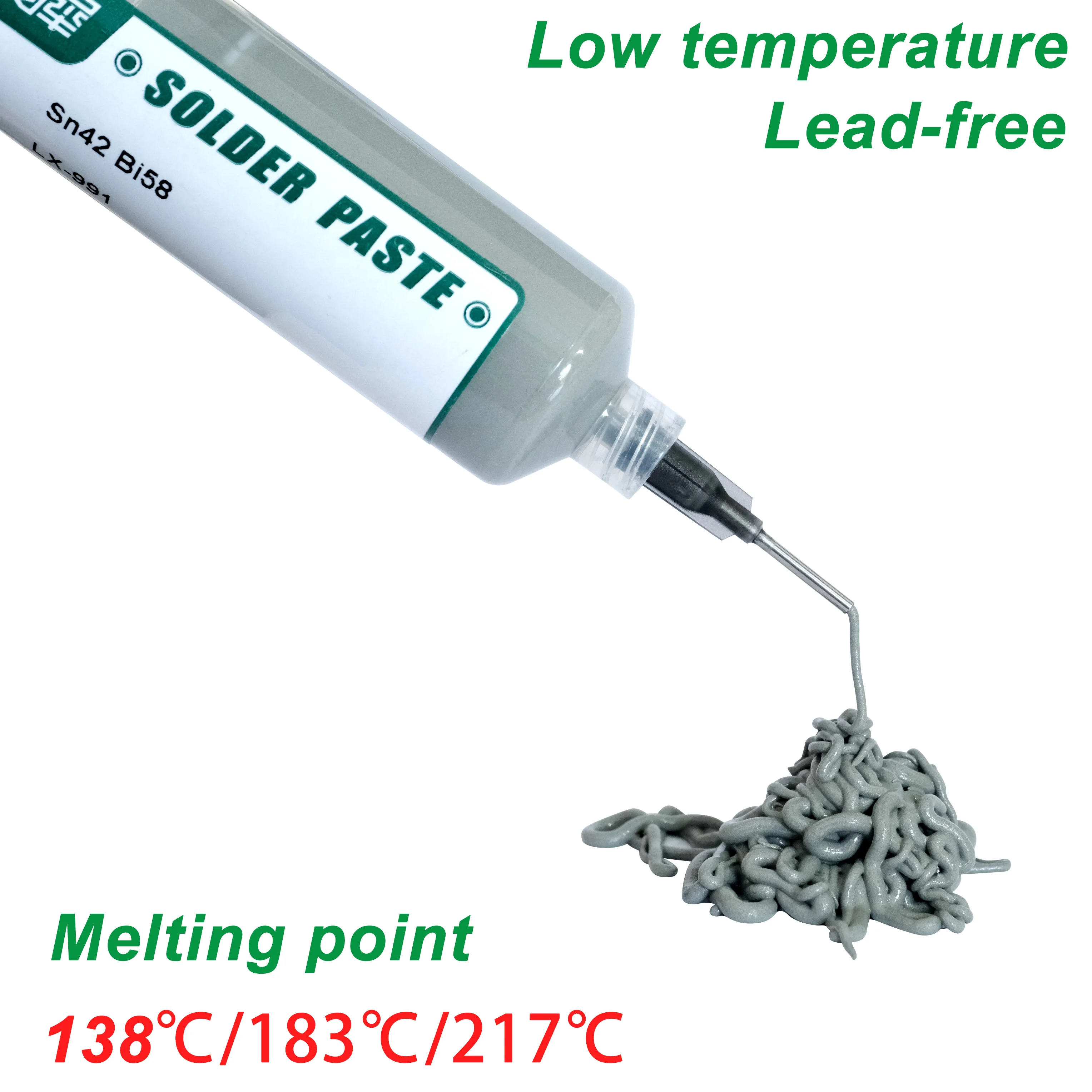 - Avantages: La pâte à souder en seringue sans plomb est très pratique à utiliser avec sa seringue. Elle permet une réparation SMD et des soudures à basse température. Les différents ingrédients offrent une grande flexibilité d’utilisation.