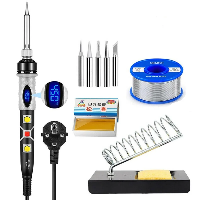 Accessoires riches et fonctionnels: fer à souder unique pour écran LCD, flux de colophane idéal, 5 embouts de fer de formes différentes, fil d’étain de haute qualité de 50g/0.8mm, support en acier inoxydable, éponge très absorbante. Avec eux, vous pouvez effectuer des travaux de soudage et de réparation à tout moment sans avoir à acheter d’autres accessoires