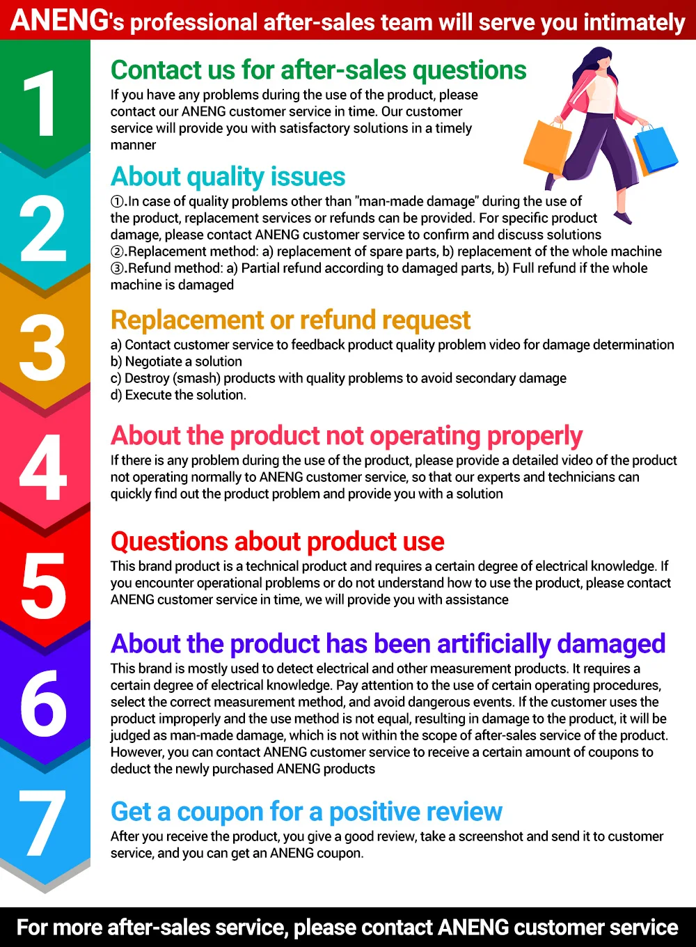 La longueur du produit ANENG SL106 est de 121cm/47.6 pouces.