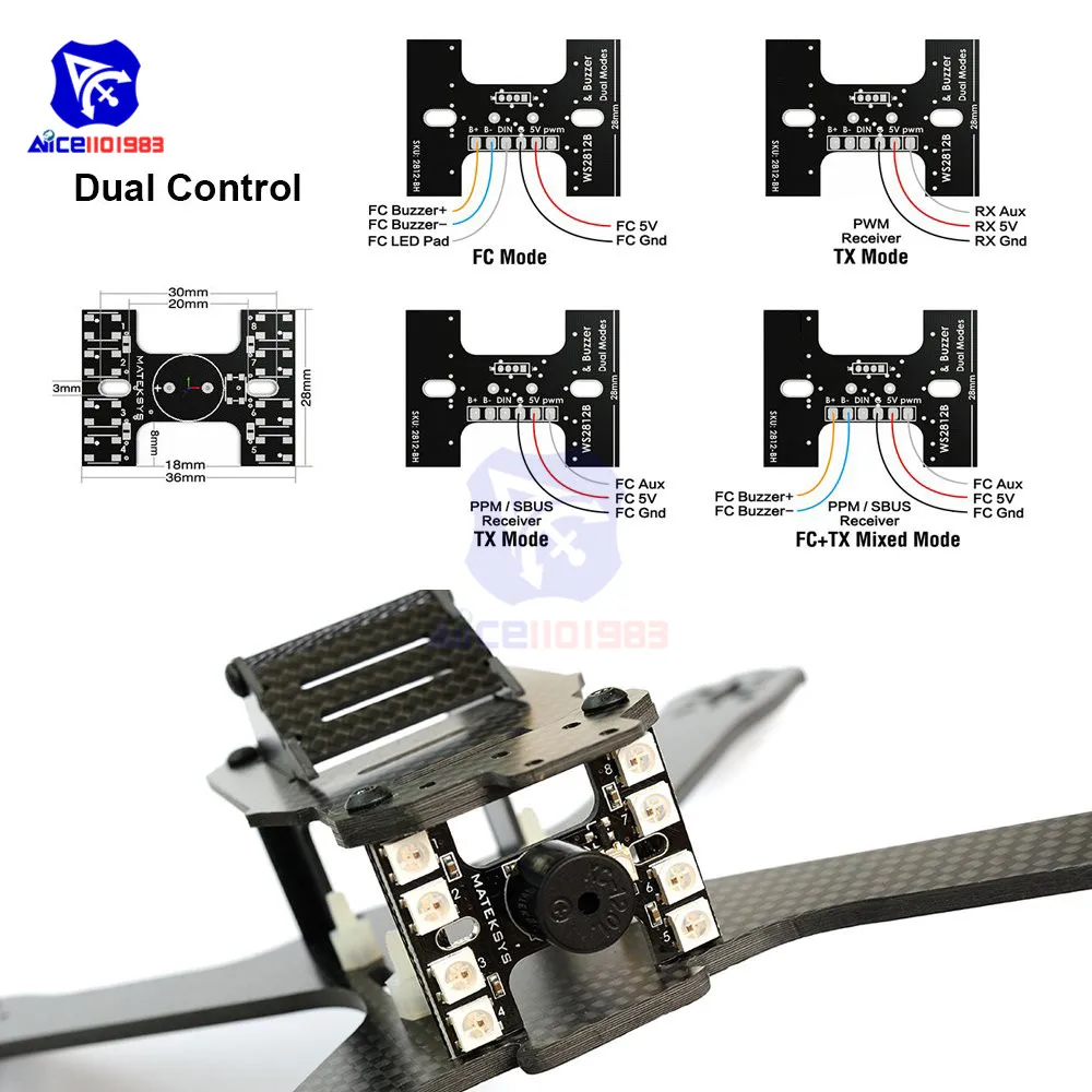 Le feu arrière LED de type H 8 WS2812B de Diymore est un accessoire idéal pour les modèles FPV RC. Il est doté d’un contrôle à double mode, avec contrôle FC et contrôle TX. Le mode TX permet de choisir parmi 7 couleurs de LED et 4 statuts de lumière différents. De plus, il est équipé d’un module de buzzer fort qui permet de localiser facilement l’avion en cas de perte.