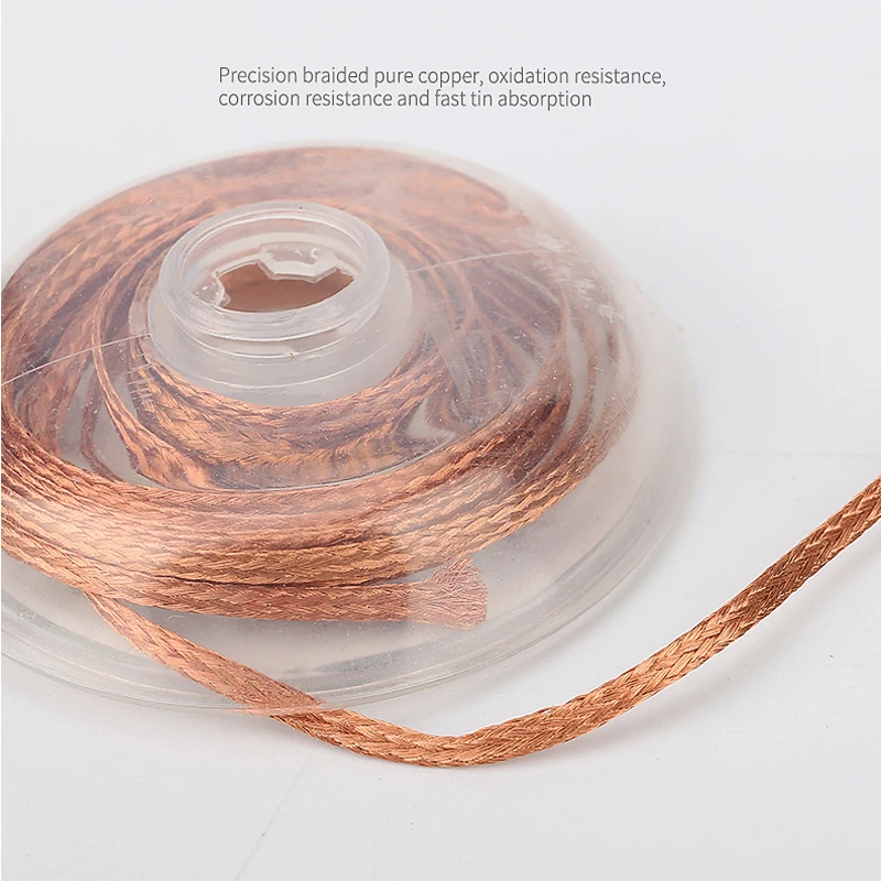 | 1.0mm, 1.5mm, 2.0mm, 2.5mm, 3.0mm, 3.5mm | 1.5m | Cuivre fin | Anti-oxydation, anti-corrosion, effet supérieur pour dessouder rapidement et nettoyer l’étain à souder du PCB |