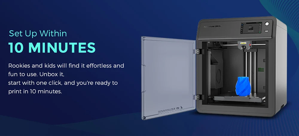 Flashforge Adventurer 5M Pro est une imprimante 3D fermée équipée d’un système de filtration double, adaptée pour une utilisation dans des environnements fermés tels que les salles d’étude et les salles de classe. Il dispose d’un grand volume d’impression de 220x220x220mm, vous permettant de faire des modèles plus exquis avec de grandes tailles.