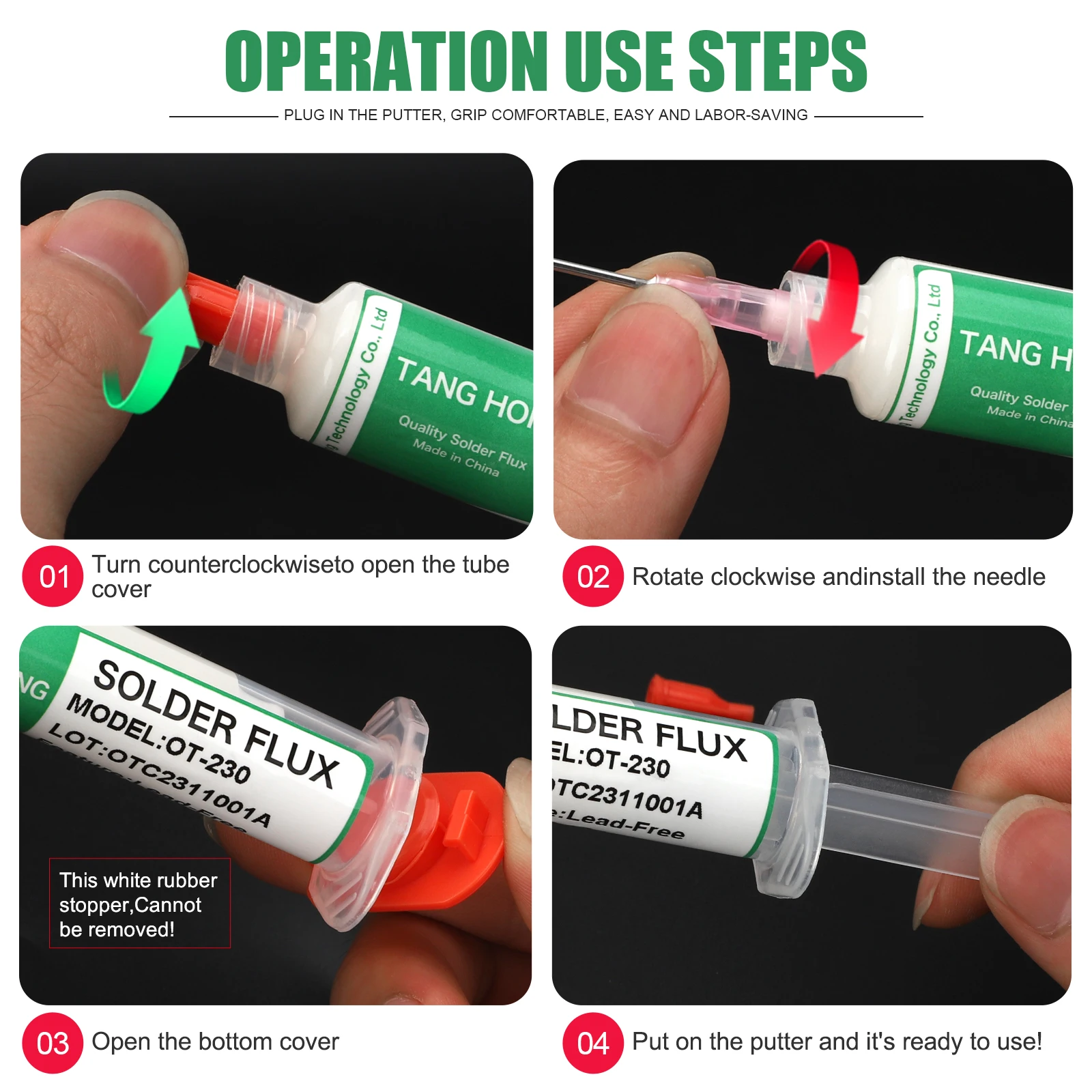 - Le flux de soudure est facile à utiliser grâce à sa conception de tube de poussée, permettant un contrôle précis de la libération du flux.