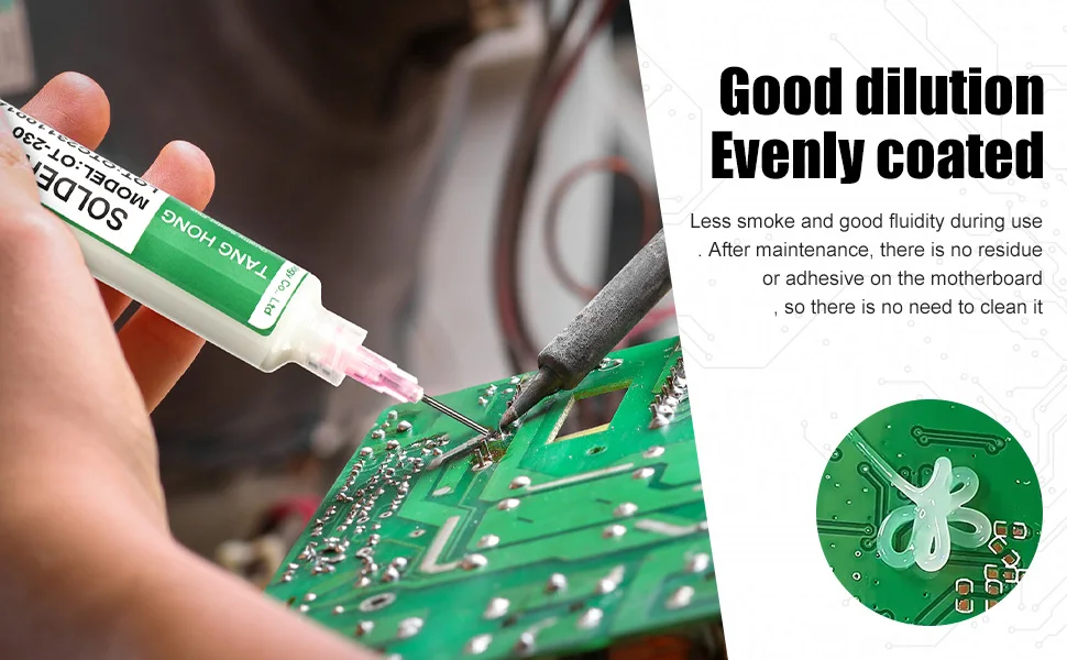 Oui, ce flux de soudage convient aux puces d’ordinateur, téléphone LED, BGA, SMD, PGA.