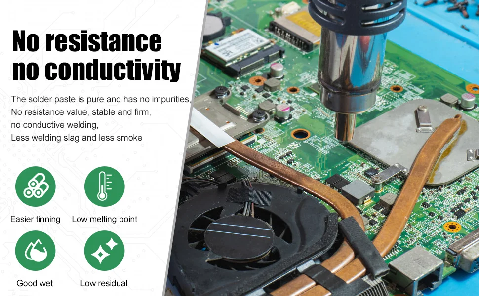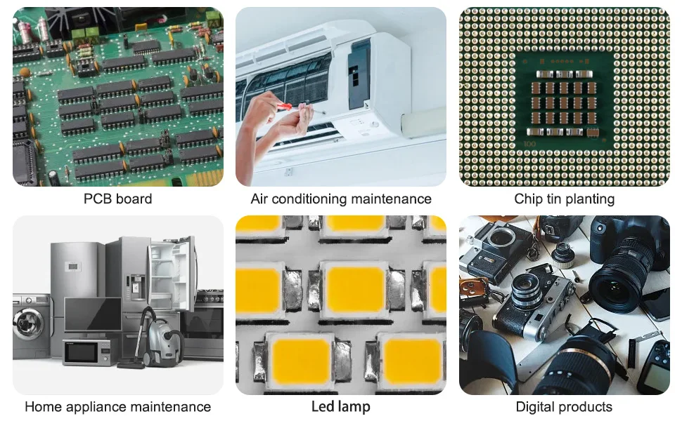 - Sa concentration élevée de colophane offre des performances de soudage exceptionnelles, assurant la stabilité et la fiabilité des joints de soudure.