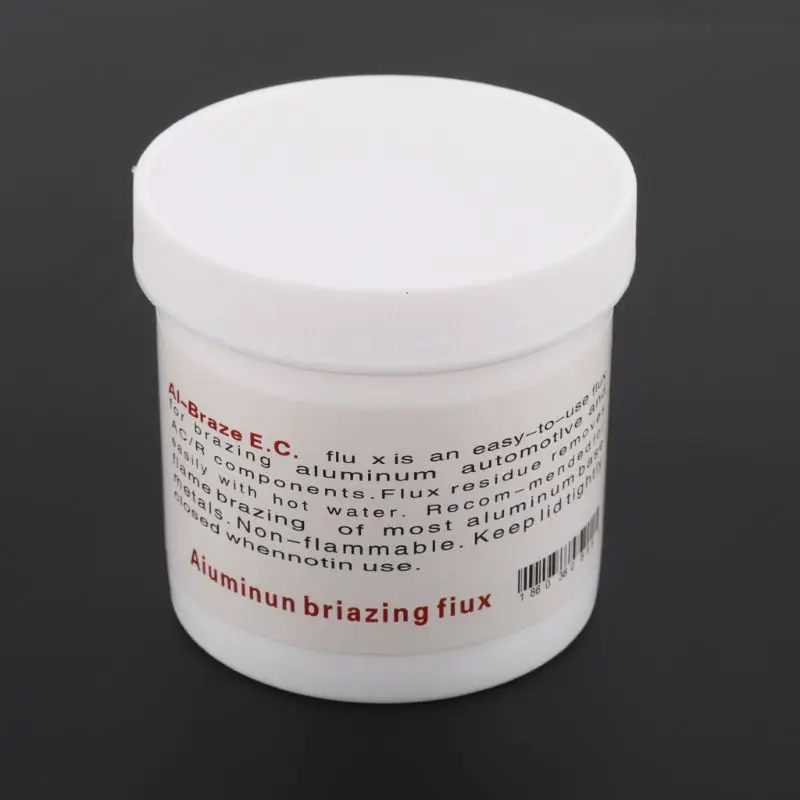 Le flux de brasage en aluminium est un accessoire de soudure utilisé avec des baguettes/fils de soudure en aluminium. Il est spécialement conçu pour souder des pièces minces en aluminium grâce à son point de fusion bas. Il a une forte capacité à dissoudre le film d’oxyde à basse température, ce qui permet de réduire efficacement la température de travail de la soudure. Ce flux de brasage en aluminium est de couleur blanc et est composé de poudre.