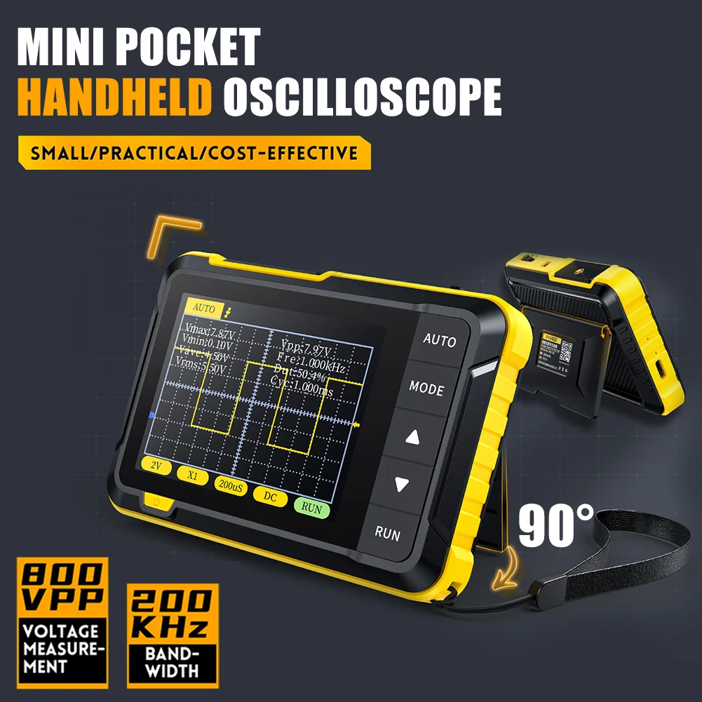 La batterie au lithium intégrée de 1000mAh offre une bonne autonomie, permettant une utilisation continue pendant environ 4 heures. De plus, l’oscilloscope est livré avec une variété d’accessoires, tels que des sondes communes et une sonde haute pression, pour répondre à différents besoins de mesure.