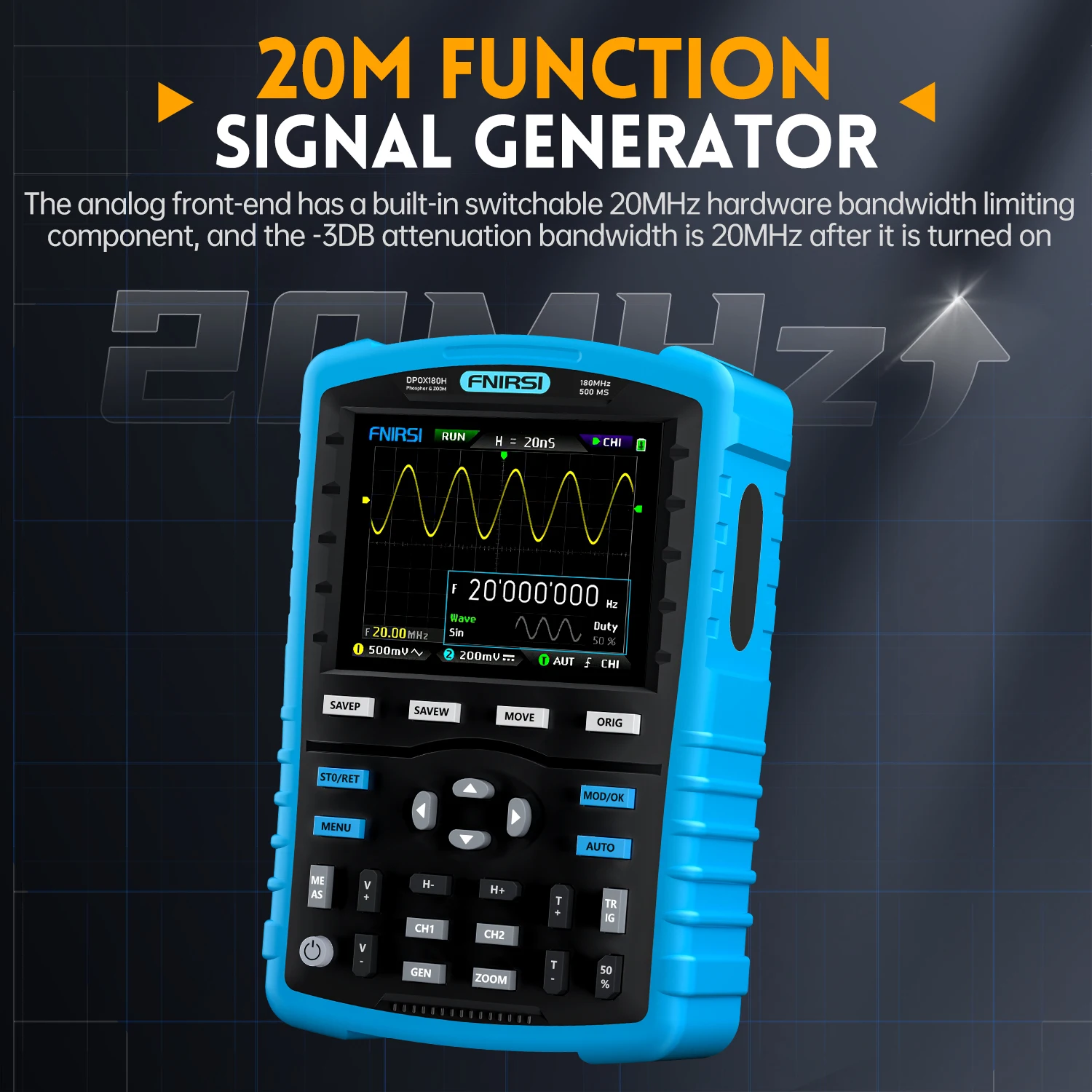 • Oscilloscope numérique à 2 canaux avec générateur de signal 20MHz