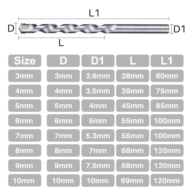 3. Convient pour percer les carreaux de céramique, la brique, le bloc, le béton, le métal, le plastique et le bois