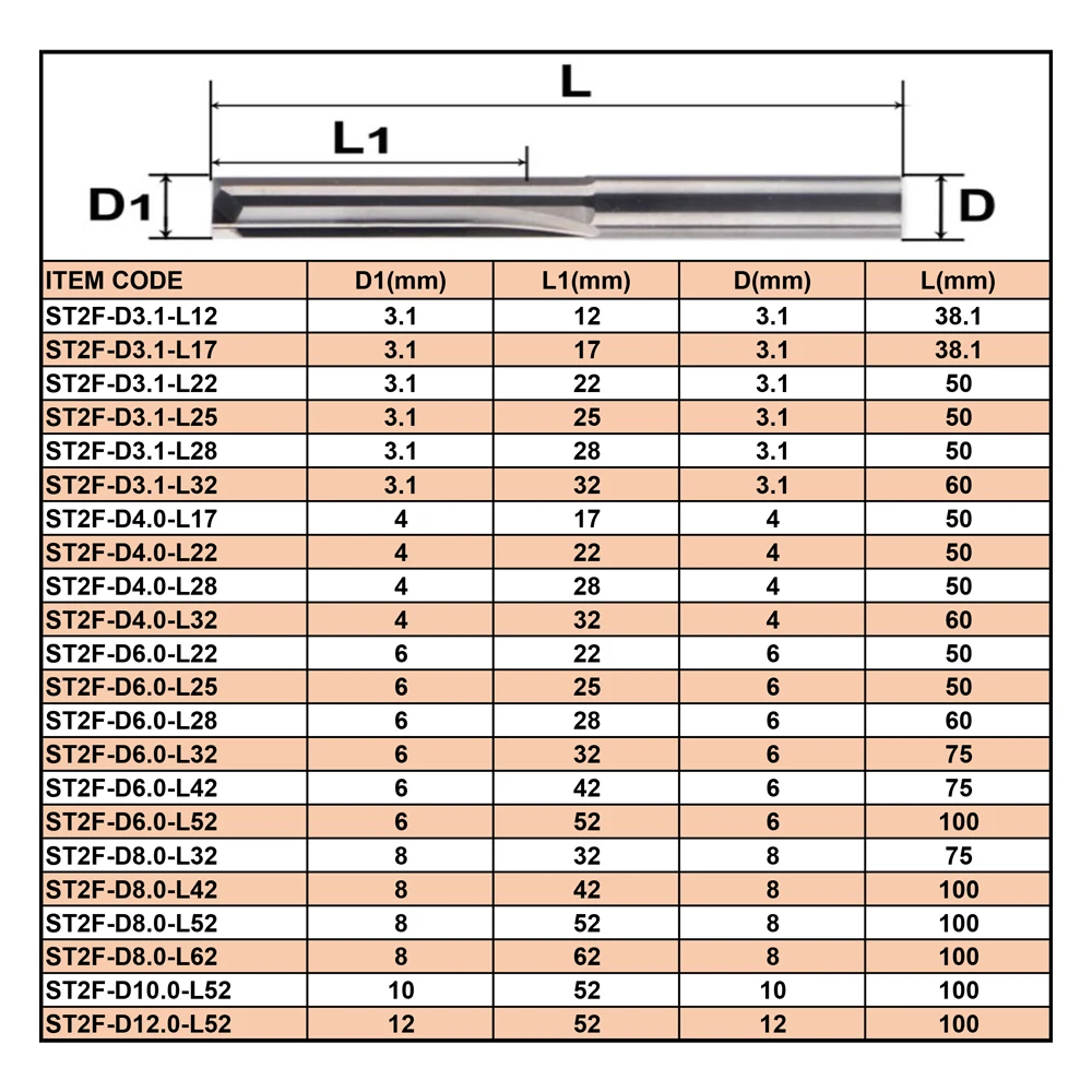 | Type: Fraise à fente droite à deux cannelures pour bois, acrylique, aluminium, cuivre |