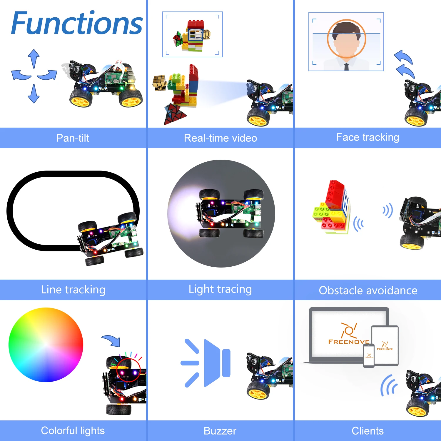 Le kit de voiture intelligente FreenGru est un kit programmable qui offre de nombreuses fonctionnalités. Que vous souhaitiez explorer le monde des robots ou apprendre à programmer, ce kit est un excellent choix. Il est compatible avec les modèles Raspberry Pi 4B, 3B+, 3B, 3A+ et offre un support technique gratuit pour vous aider en cas de questions ou de problèmes.