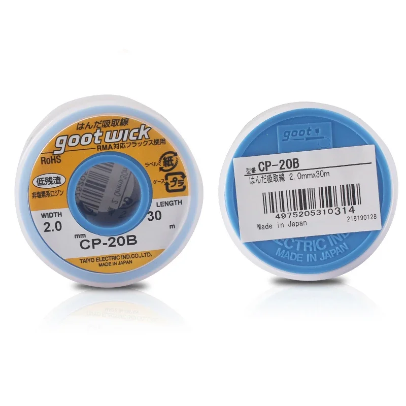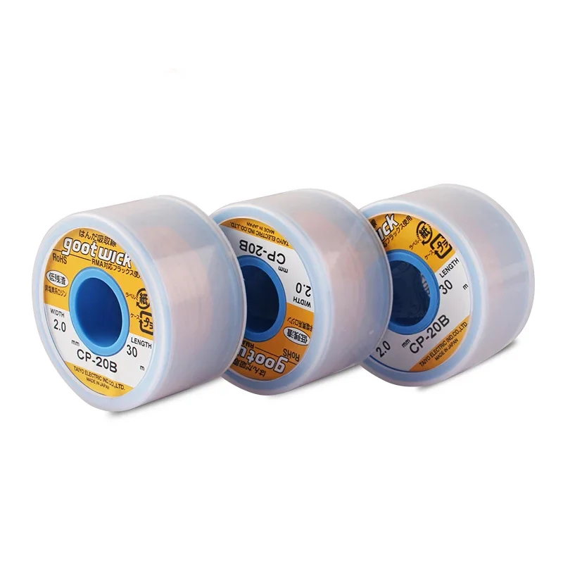 Les Mèches à dessouder GOOT sont des tresses de fil de cuivre conçues pour le nettoyage de la soudure. Elles sont idéales pour enlever facilement les résidus de soudure sur les plaquettes de puce et les composants électroniques. Leur utilisation permet de garantir une bonne qualité de soudure et d’améliorer les performances des composants électroniques.