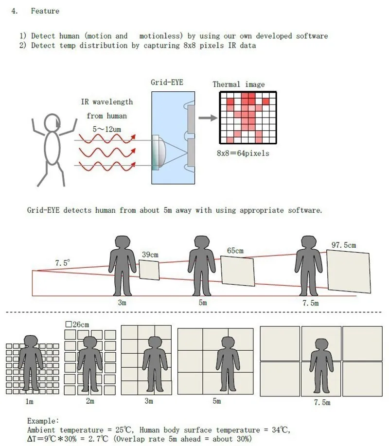 Le cycleur thermique infrarouge 8×8 GY-MCU8833 Ardu37 est équipé d’une technologie de capteur de température à matrice de points et d’un tableau d’imagerie de caméra infrarouge AMG8833 IR 8×8. Il permet de mesurer la température ambiante et la température cible dans une plage de 0 à 80 degrés avec une précision de ± 2.5 degrés. La résolution de mesure de température est de 0.25 degrés et l’angle de vue est de 60×60. Le cycleur fonctionne avec une tension de 3-5V et un courant de travail de 10mA.