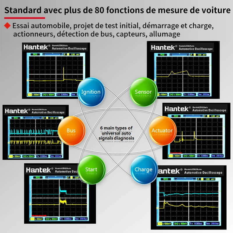 L’appareil Hantek-Oscilloscope de détermination portable, multimètre numérique, générateur de signal 25MHz, entretien automobile, 2D82AUTO, 80Mhz offre une multitude de fonctionnalités pour la mesure et le diagnostic automobile. Compact et portable avec une seule poignée, il est facile à transporter et convient aux professionnels ainsi qu’aux débutants.