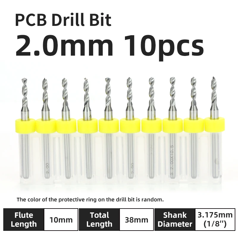 - Le diamètre du foret est disponible par incréments de 0.1mm de 0.1 à 3.175mm. Si vous ne trouvez pas le diamètre dont vous avez besoin, veuillez contacter le service client pour obtenir de l’aide.
