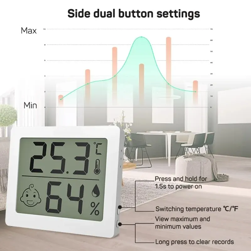 Température électronique de haute précisionCe thermomètre offre une mesure de température électronique de haute précision, assurant des lectures précises de votre environnement intérieur.
