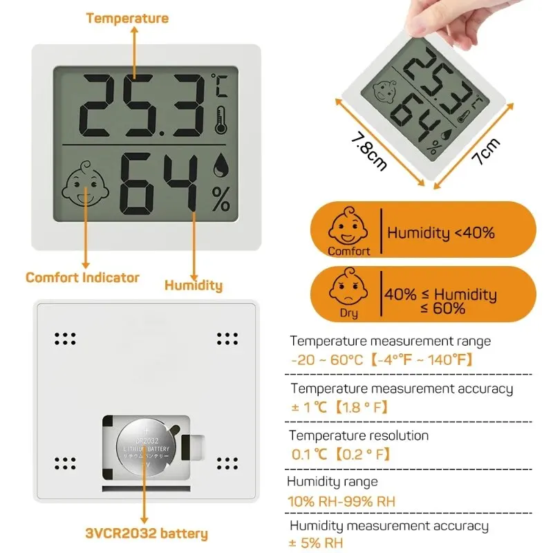 Le grand écran ultra-mince de cet hygromètre permet une visualisation facile et claire des niveaux de température et d’humidité à distance. Cela le rend pratique à utiliser dans n’importe quelle pièce.