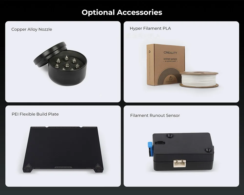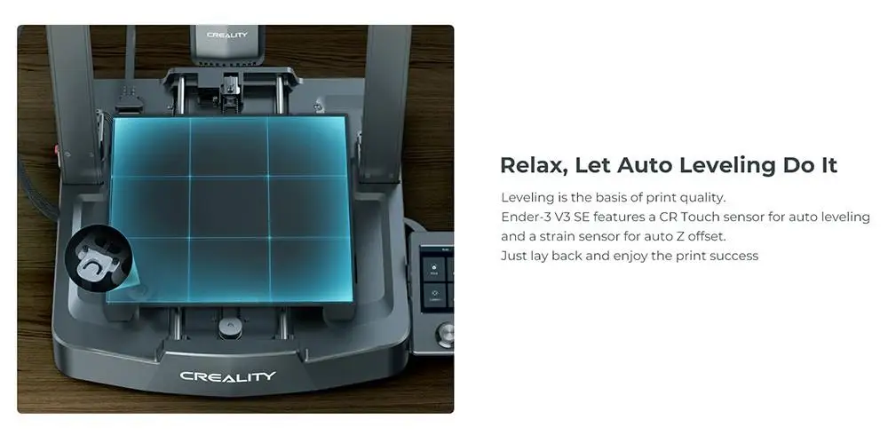 - CR Touch pour le nivellement automatique et capteur de contrainte pour le décalage automatique Z. Facile d’obtenir une première couche parfaite.