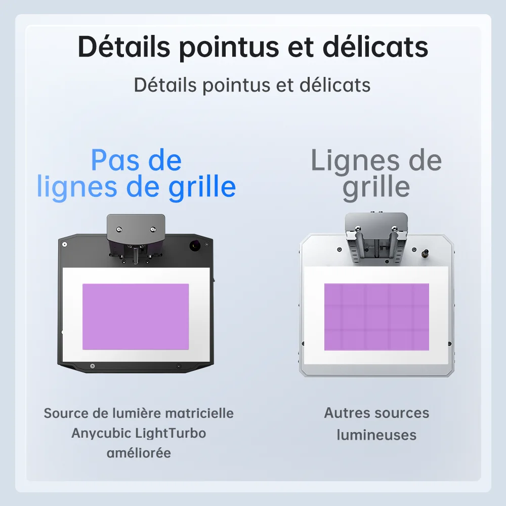 - La source de lumière améliorée et le rail linéaire double garantissent des détails pointus et délicats dans les impressions.