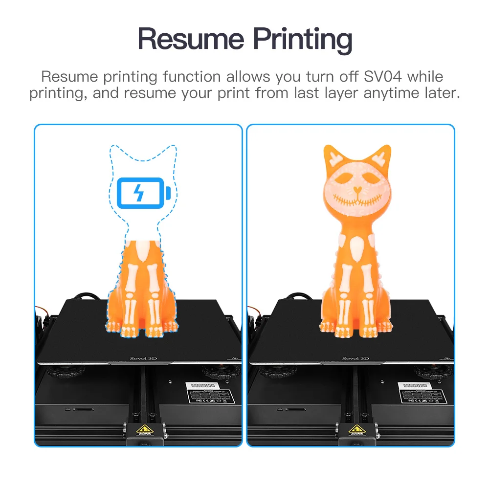 – L’alimentation Chengliang intégrée de 500W assure une puissance stable et suffisante, un chauffage rapide pour le foyer et la buse. Elle protège le SV04 contre les surtensions inattendues. Pour toute question ou problème concernant le produit, n’hésitez pas à nous contacter. Nous ferons de notre mieux pour vous aider à le résoudre.