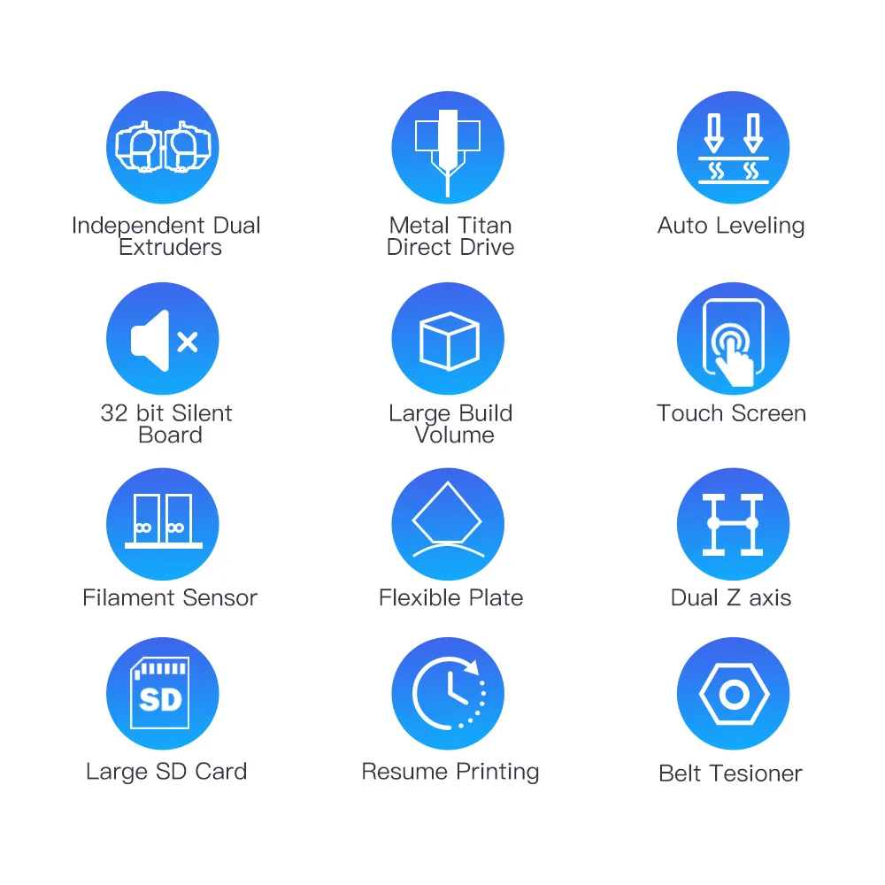 - Volume de construction de 300x300x400mm, la meilleure imprimante 3D indépendante grand format à double extrudeuse