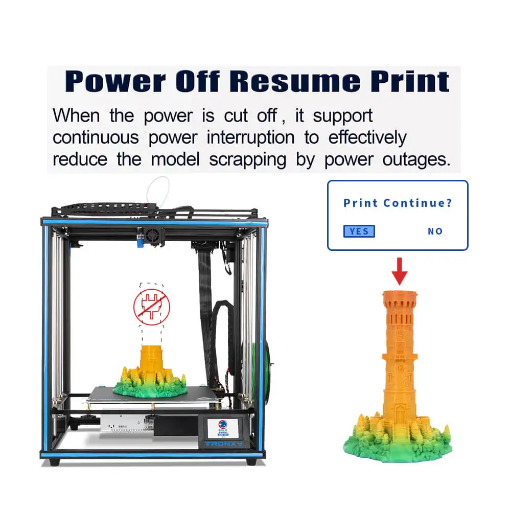 L’imprimante 3D Tronxy X5SA est une nouvelle version améliorée du modèle X5SA. Elle est livrée en kit d’installation autonome avec une extrudeuse Titan et un rail de guidage en porcelaine. Elle est également équipée d’une fonction de reprise en cas de panne de courant.