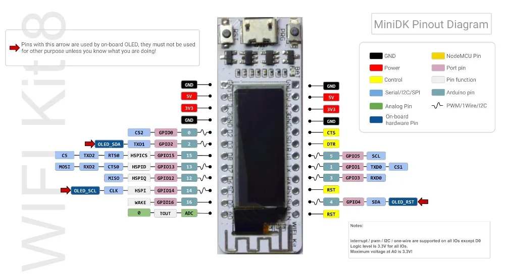 Le kit WIFI 8 est un programme de développement rentable de l’Internet des objets, la puce principale utilisant ESP8266, avec puce CP2014 USB vers série, interface de batterie au lithium et circuit de charge et de décharge, Flash de 4 Mo, antenne WIFI, écran OLED 0.91 pouces.
