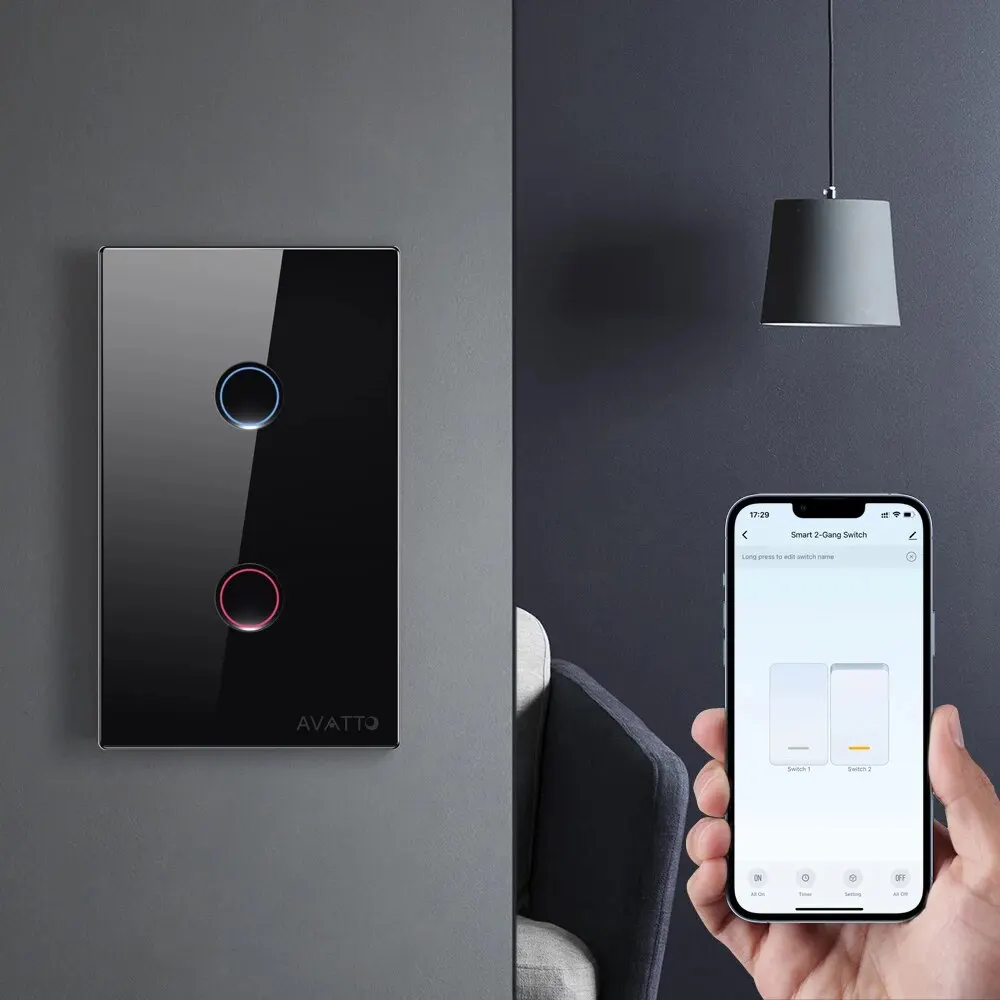 Le AVATTO-Tuya WiFi Touch Smart Switch est un produit pratique et innovant qui offre de nombreuses fonctionnalités intéressantes. Son panneau en verre trempé 2.5D et son bouton tactile de conception de rainure donnent une apparence moderne et texturée. La télécommande via l’application vous permet de contrôler le commutateur à distance, tandis que la commande vocale mains libres le rend encore plus pratique. De plus, la fonction de synchronisation vous permet de ne pas oublier d’éteindre la lumière lorsque vous quittez la maison.
