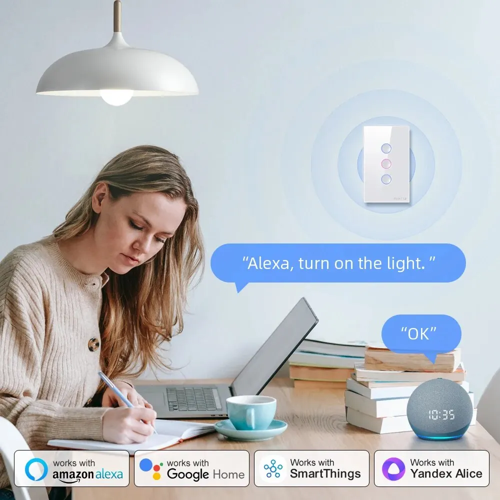 Parfaitement compatible avec Alexa, Google home, Smartthings, Alice. Qui aide à allumer ou éteindre les lumières via votre voix.