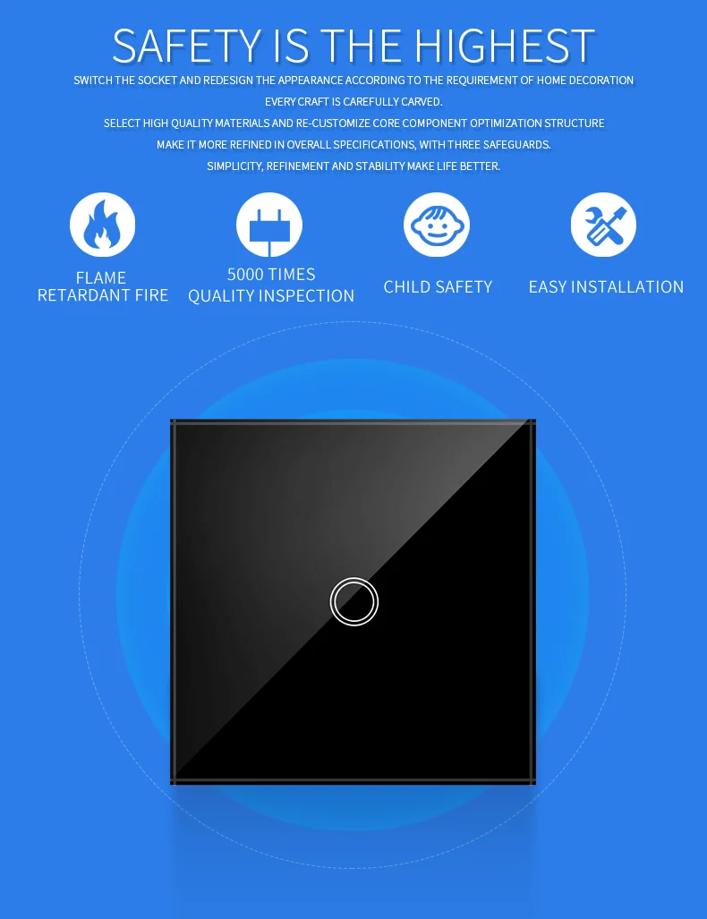 Après avoir testé l’UE Tactile Interrupteur AC100 240V Trempé Noir Blanc Cristal Verre Panneau Puissance Mur Lumière Capteur Commutateurs, je suis très satisfait de ses performances. La fonction tactile facilite grandement l’utilisation au quotidien et le design en verre trempé apporte une touche d’élégance à mon intérieur. De plus, sa certification CE me rassure quant à sa conformité aux normes de sécurité européennes. Je recommande donc ce produit à ceux qui recherchent un interrupteur mural moderne et pratique.