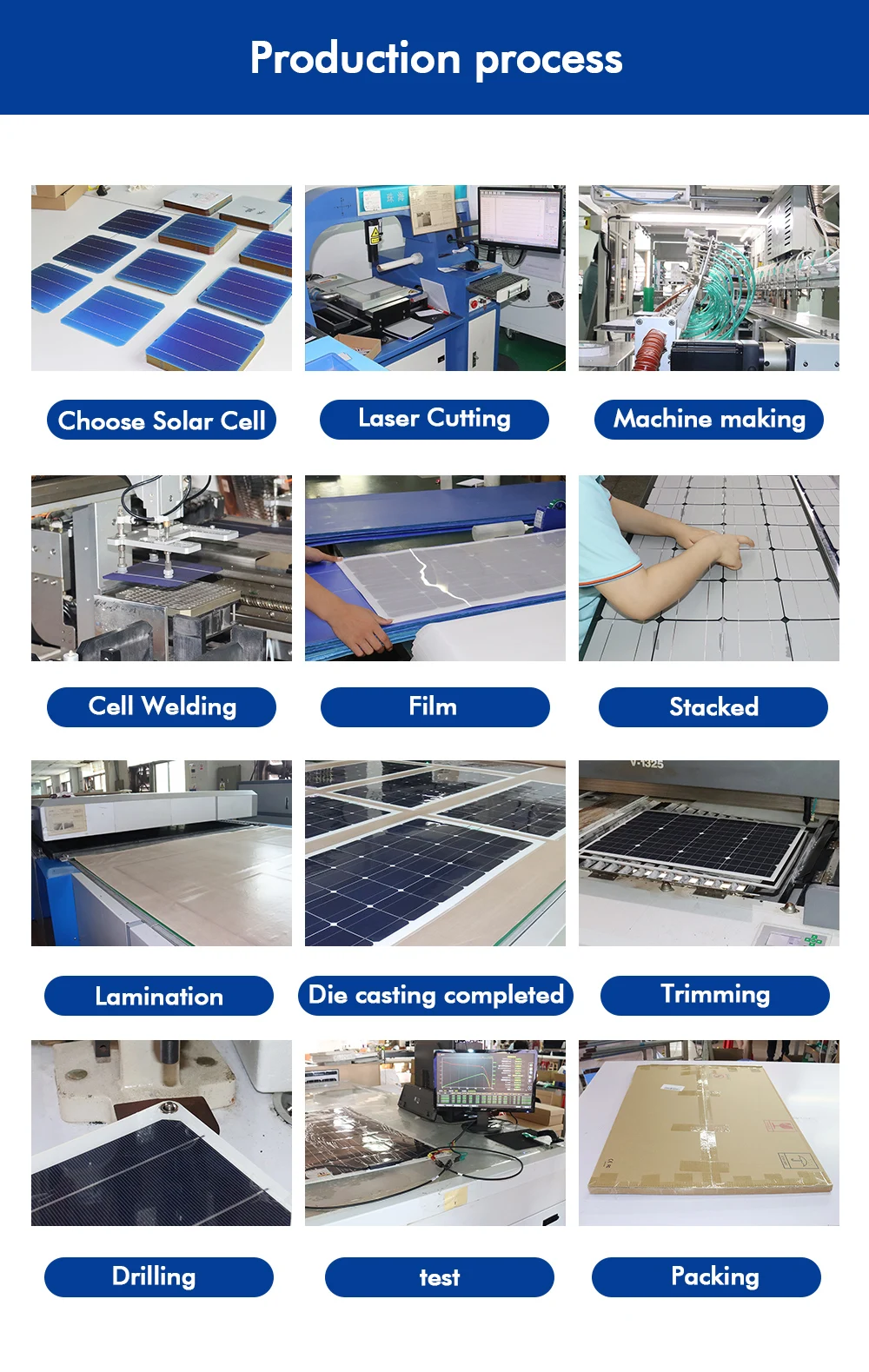 - Conditions d’essai standard : lrradiance 1000w/m2, température 25 ℃,AM = 1.5