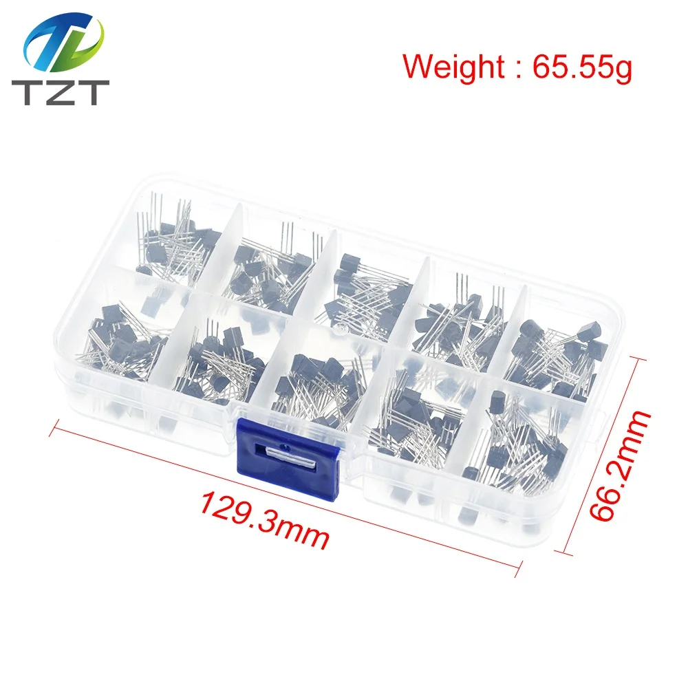 - Les transistors inclus sont : BC337, BC327, 2N2222, 2N2907, 2N3904, 2N3906, S8050, S8550, A1015, C1815