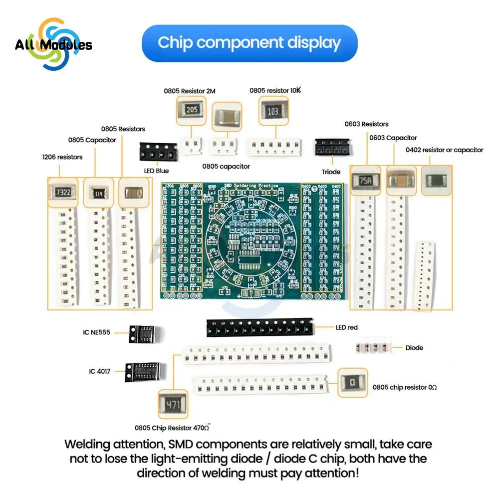 • Caractéristiques fonctionnelles: circuit d’éclairage à flux moyen, trois colonnes pour la pratique du soudage sur les côtés gauche et droit, mesure pratique des composants avec une échelle arrière, emballage à composants multiples, compréhension des noms et des tailles des emballages, liste réelle des fils PCB, conception et utilisation de PCB pratiques