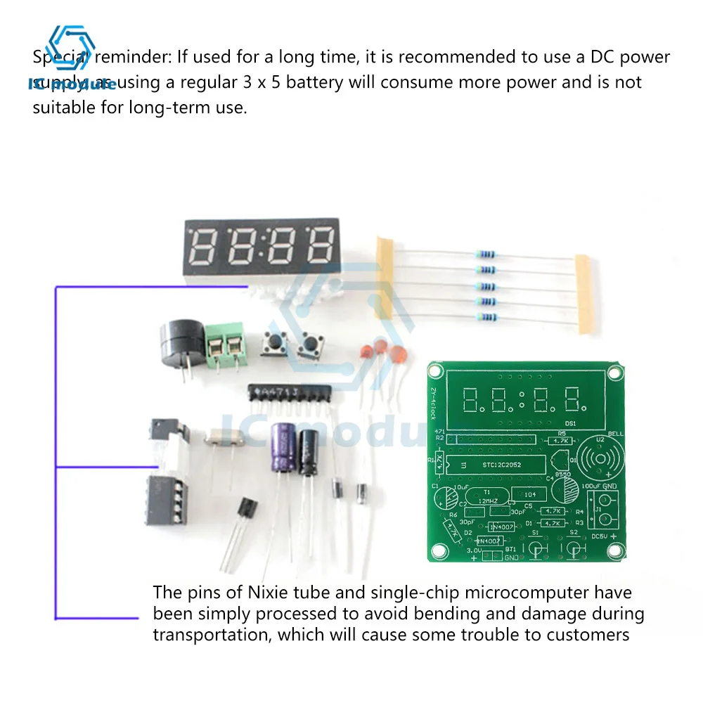 - Ce produit est un kit d’horloge électronique numérique à 4 chiffres, qui doit être soudé et assemblé par vous-même.